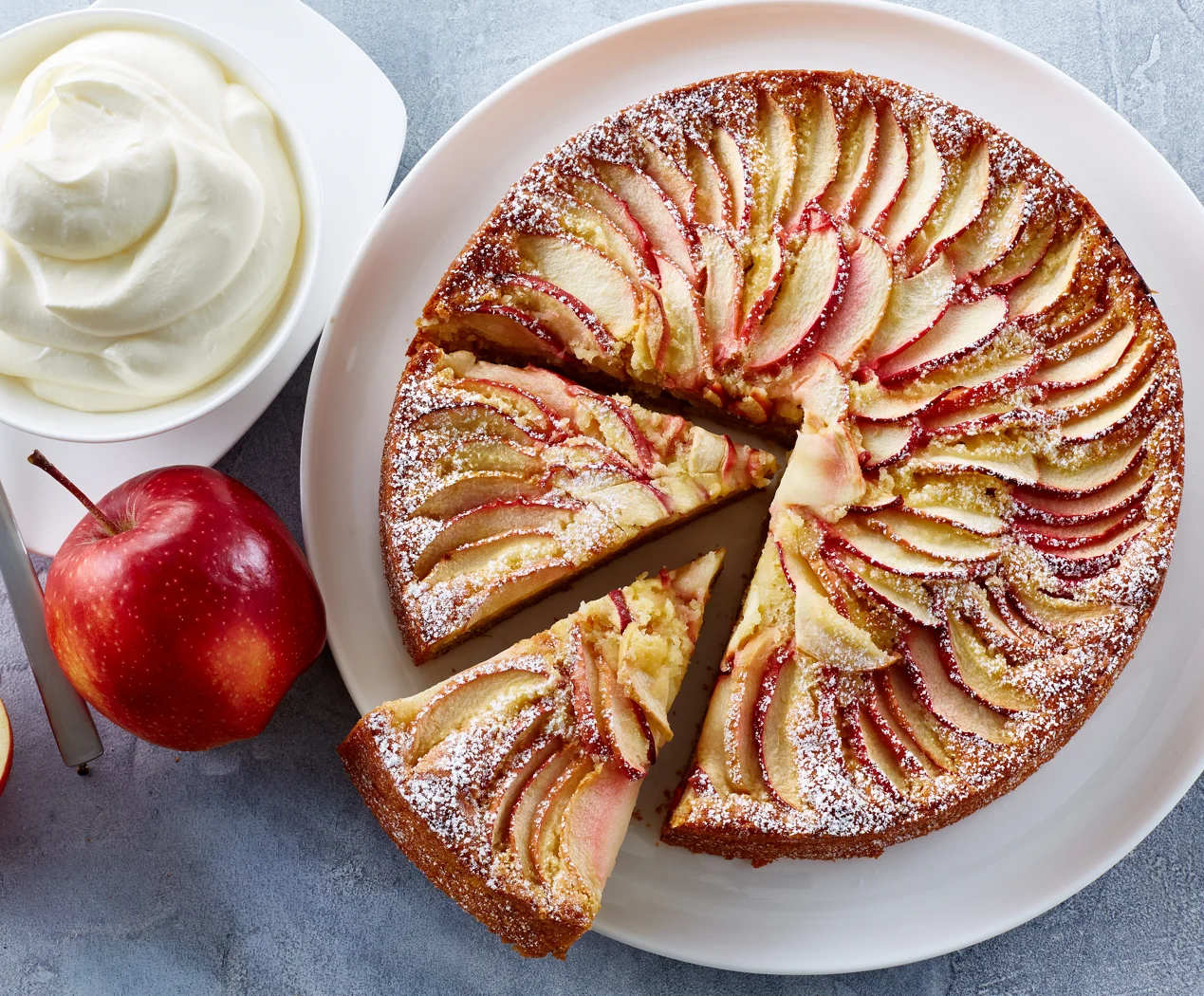 Drys flormelis over kagen - brug en finmasket si. Server æblekagen med creme fraiche eller flødeskum.
